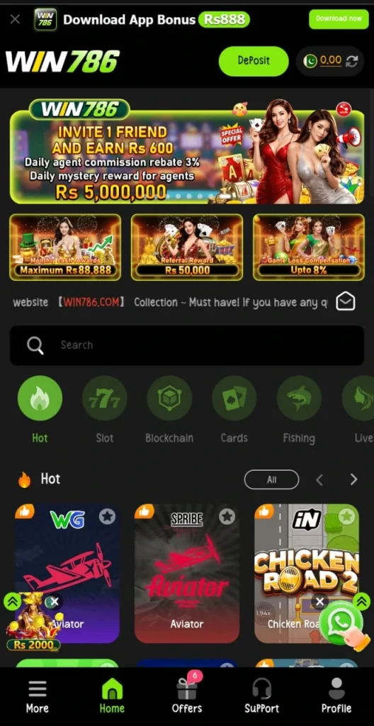 You can start playing Win786 with a very small deposit, making it accessible for students and low-income users who want to test the platform before investing more. This low barrier to entry is one of its strongest points.